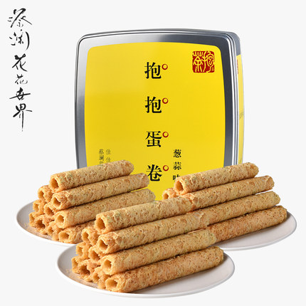 蔡瀾花花世界抱抱手工雞蛋捲蔥蒜蛋捲3盒裝990g全家共享休閒零食