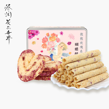 蔡瀾花花世界零食大禮包玫瑰蛋捲/玫瑰蝴蝶酥/玫瑰羅漢果茶包