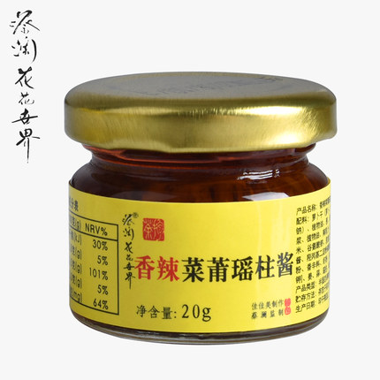 品牌名稱:蔡瀾花花世界 產品參數: 生產許可證編號:SC12444190000396廠名:東莞市佳佳美食品有限公司廠址:東莞市道滘鎮振興北二路22號廠家聯繫方式:88313818配料表:詳見標籤保質期:360 天食品添加劑:無淨含量: 20g包裝方式: 包裝品牌: 蔡瀾花花世界系列: 香辣雪菜瑤柱醬規格: 20g嚐鮮裝產地: 中國大陸省份: 廣東省城市: 東莞市 天貓店購買連結: 蔡瀾花花世界天貓店