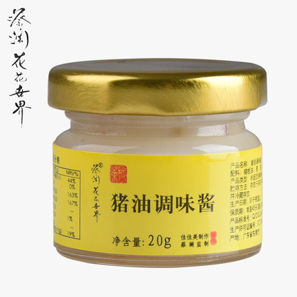 品牌名稱:蔡瀾花花世界 產品參數: 生產許可證編號:SC12444190000396廠名:東莞市佳佳美食品有限公司廠址:東莞市道滘鎮振興北二路22號廠家聯繫方式:88313818配料表:詳見標籤保質期:360 天食品添加劑:無淨含量: 20g包裝方式: 包裝品牌: 蔡瀾花花世界系列: 豬油醬調味醬規格: 20g嚐鮮裝產地: 中國大陸省份: 廣東省城市: 東莞市 產品購買連結: 蔡瀾花花世界天貓店